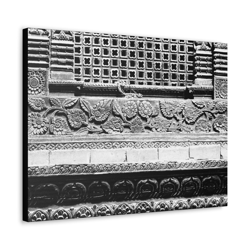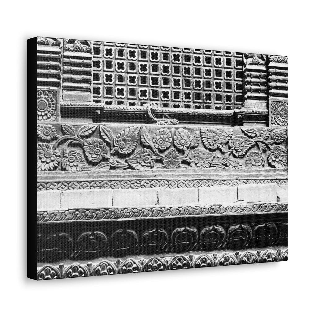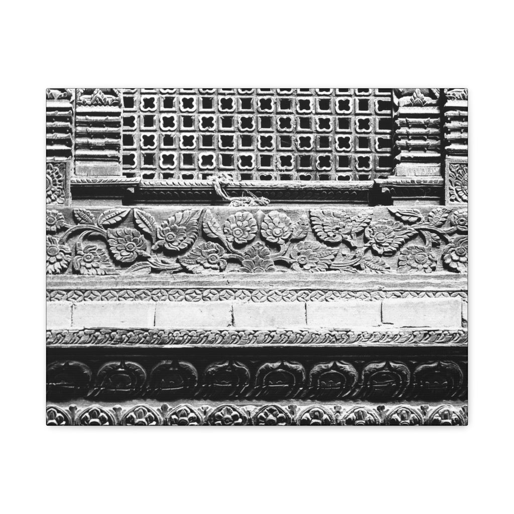Displaying layers of traditional craftsmanship, this window grate with floral carvings displays the talent of the Newari craftsmen.