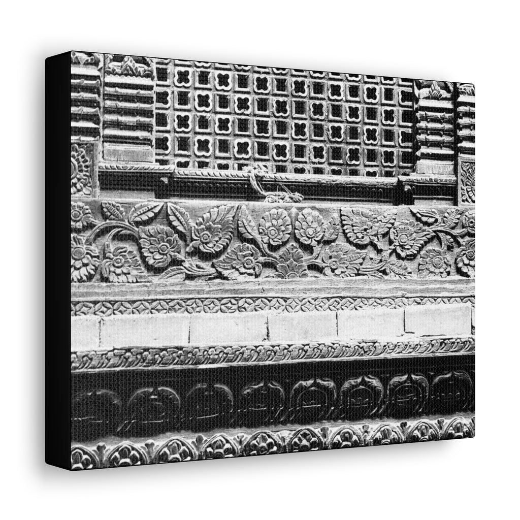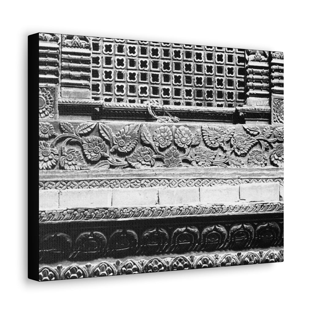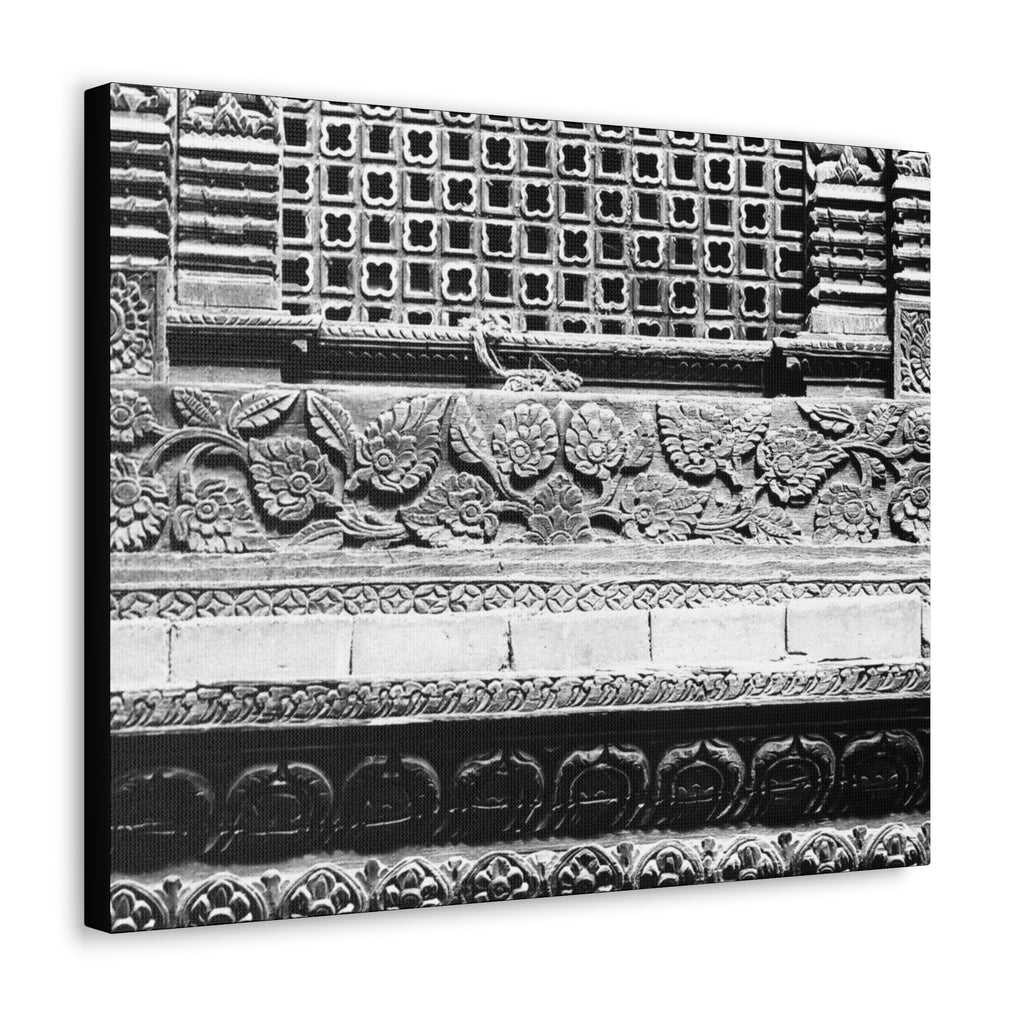 Displaying layers of traditional craftsmanship, this window grate with floral carvings displays the talent of the Newari craftsmen.