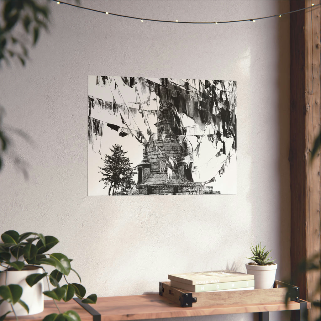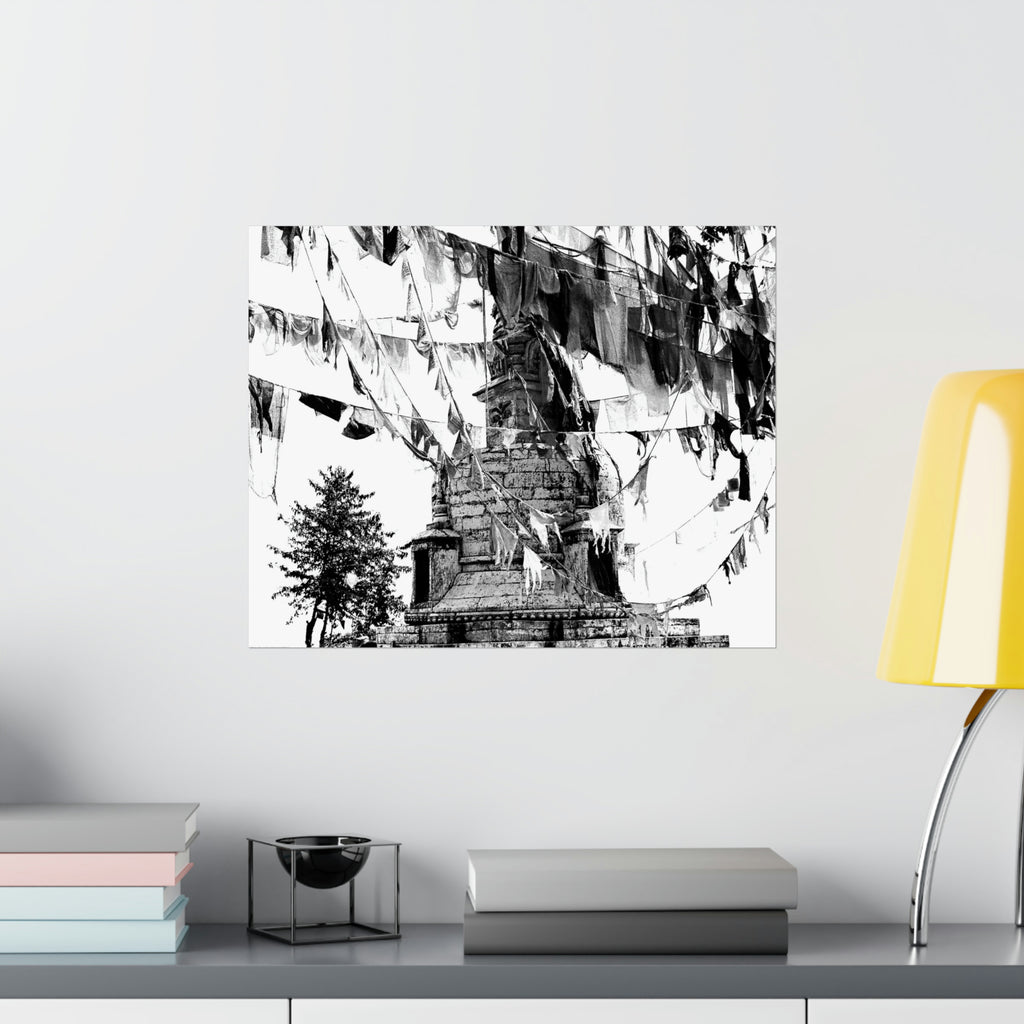 16 - Prayer Flags Flying With Small Stone Temple - Premium Poster Print