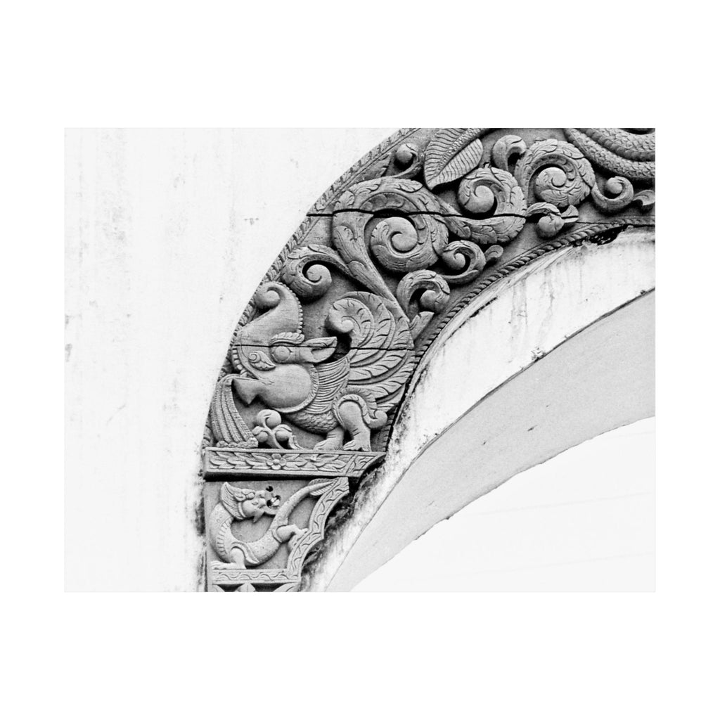 The lone non-red structure in a sea of brick, the Hanuman Dhoka Royal Palace in Durbar Square provides a visual wave of contrast that demands attention. So does this small, seemingly trivial arched wall carving detail found above one of the palace doors.