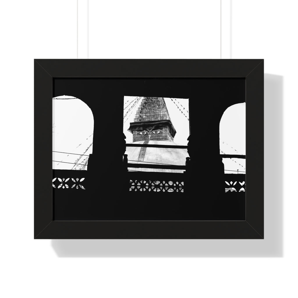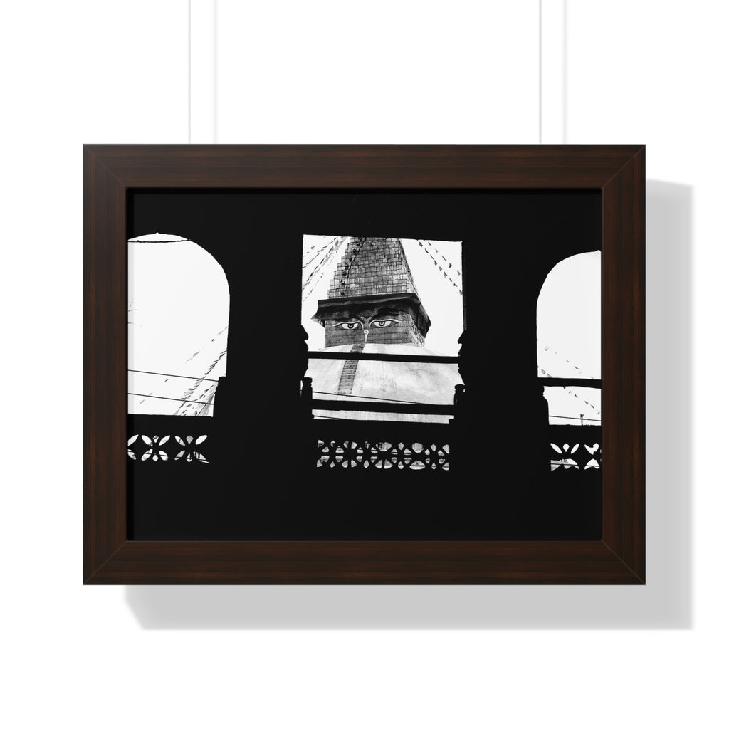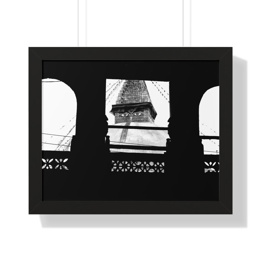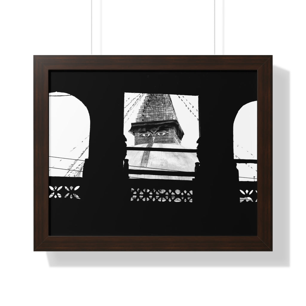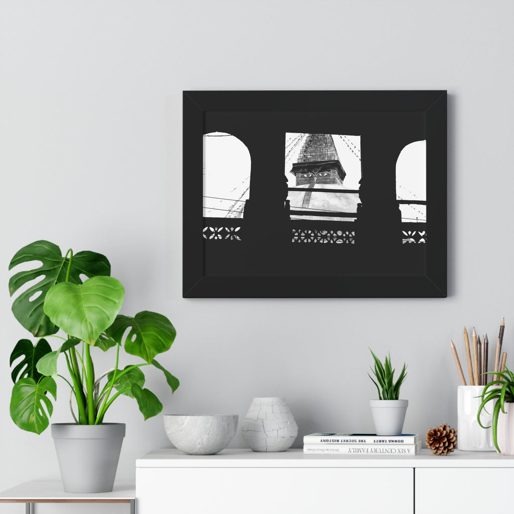 21 - Bouddha Stupa Seen Through Window - Kathmandu Nepal - Framed Photo Print