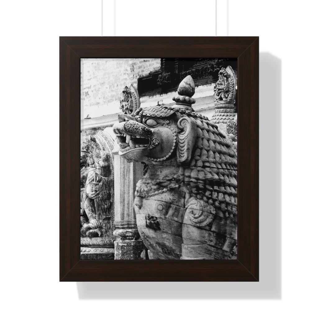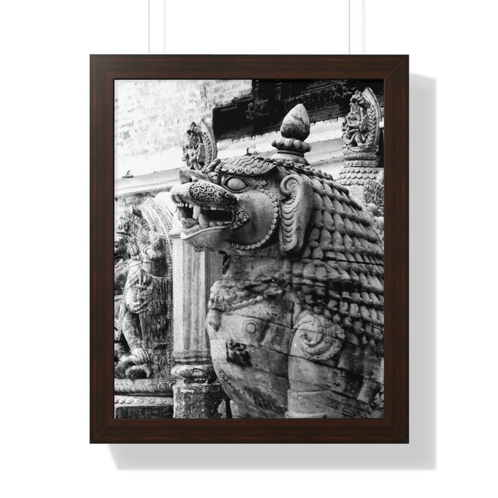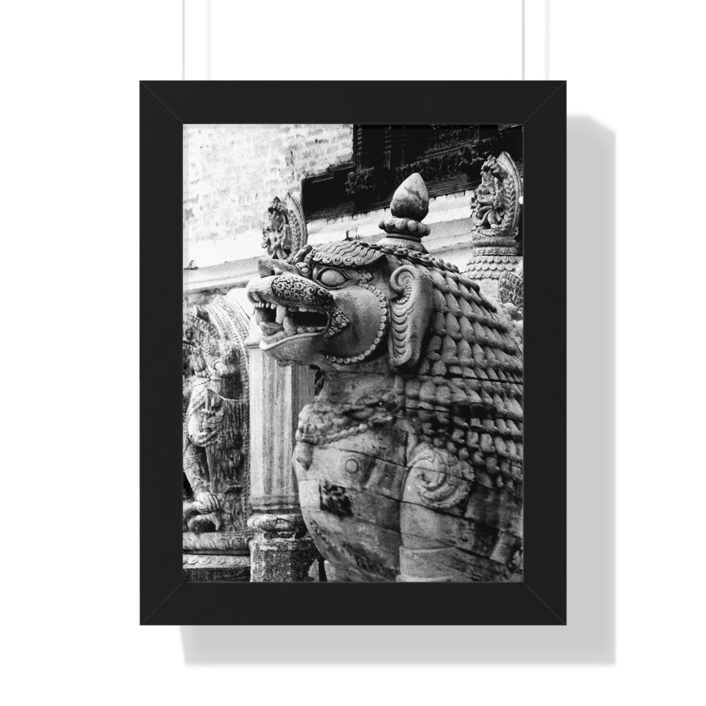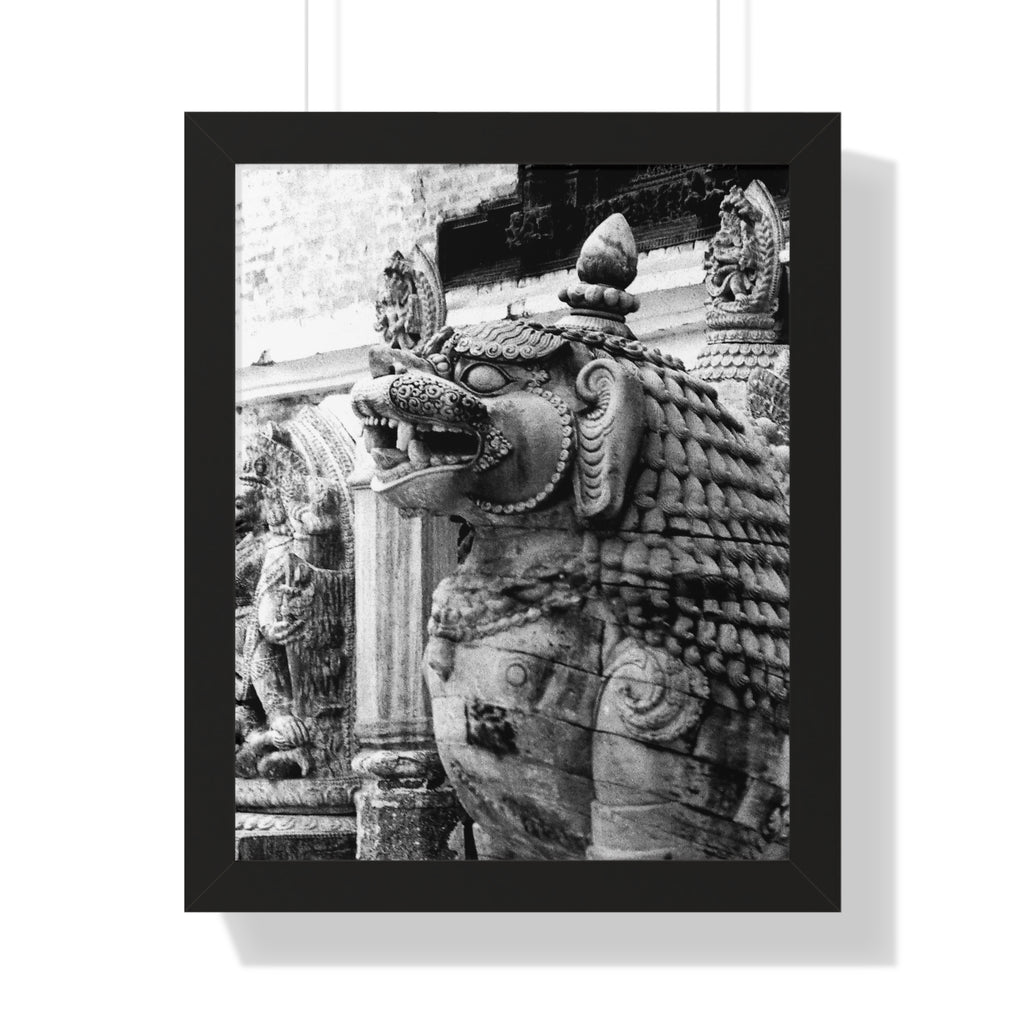 22 - Stone Statue Of Sitting Lion - Patan Nepal Durbar Square - Framed Photo Print