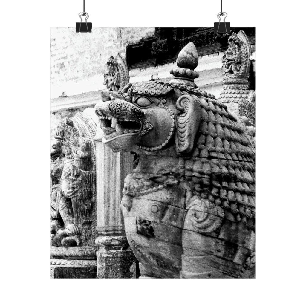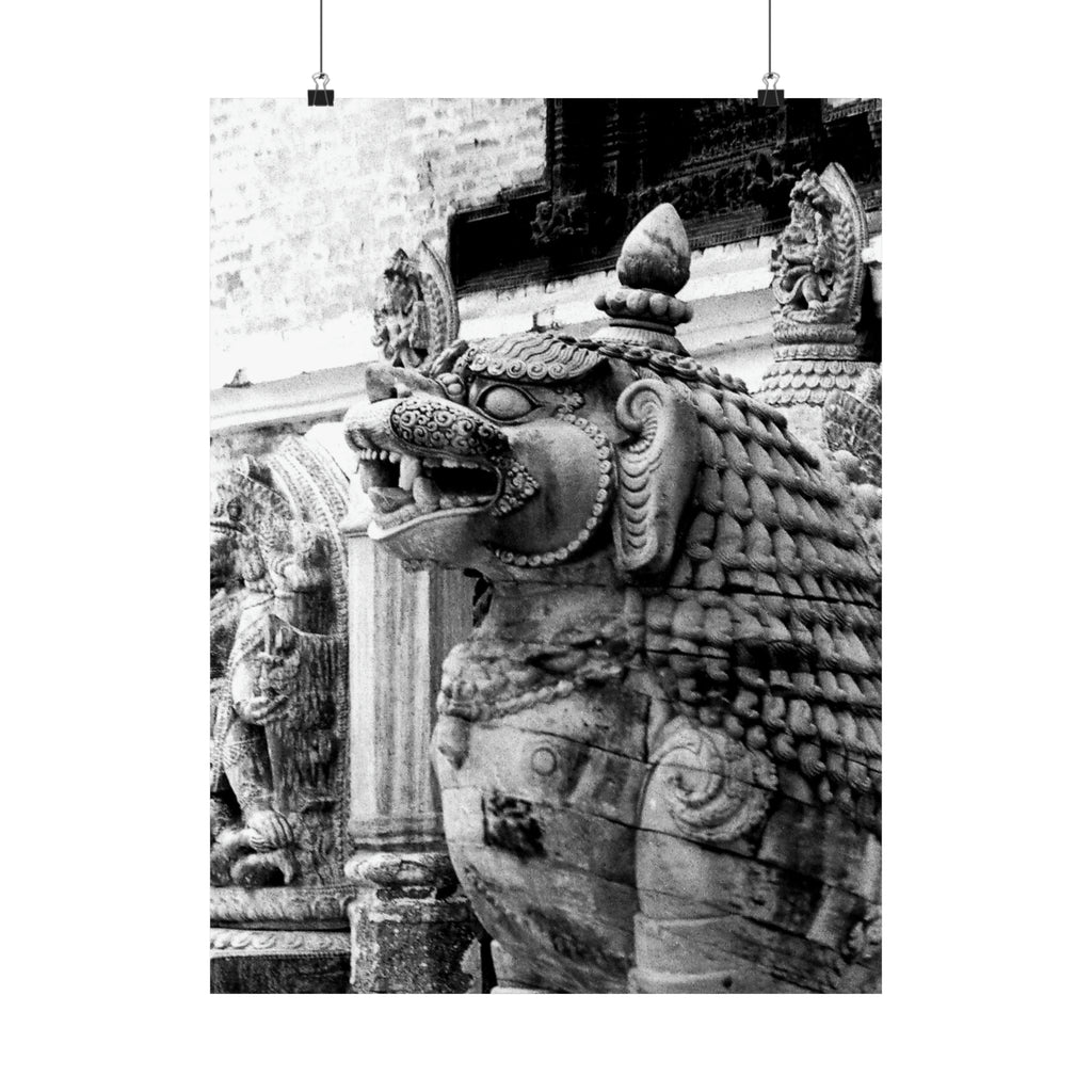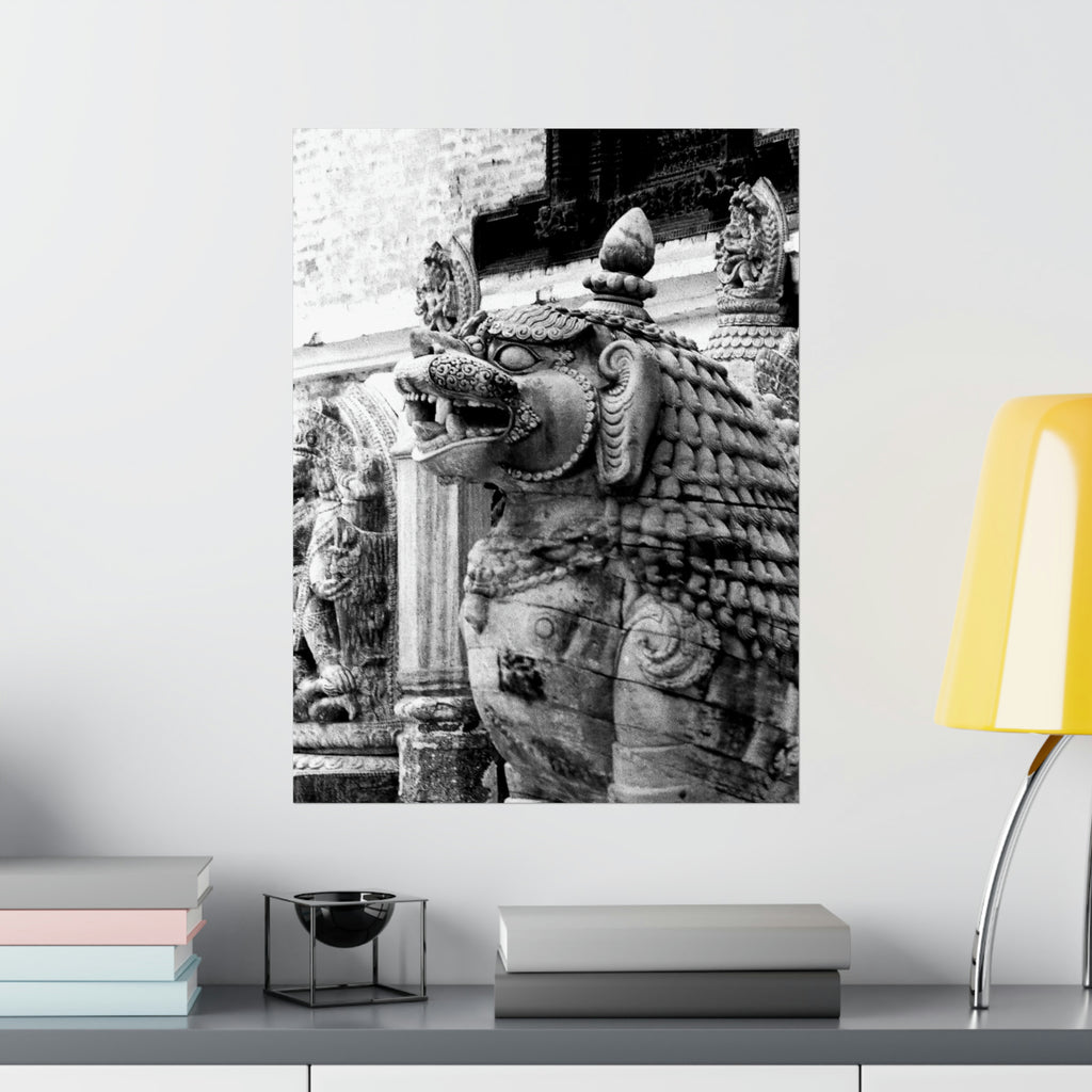 22 - Stone Statue Of Sitting Lion - Patan Nepal Durbar Square - Premium Poster Print