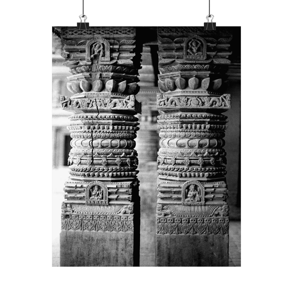 23 - Detail Of Two Stone Carved Columns - Patan Nepal Durbar Square - Premium Poster Print