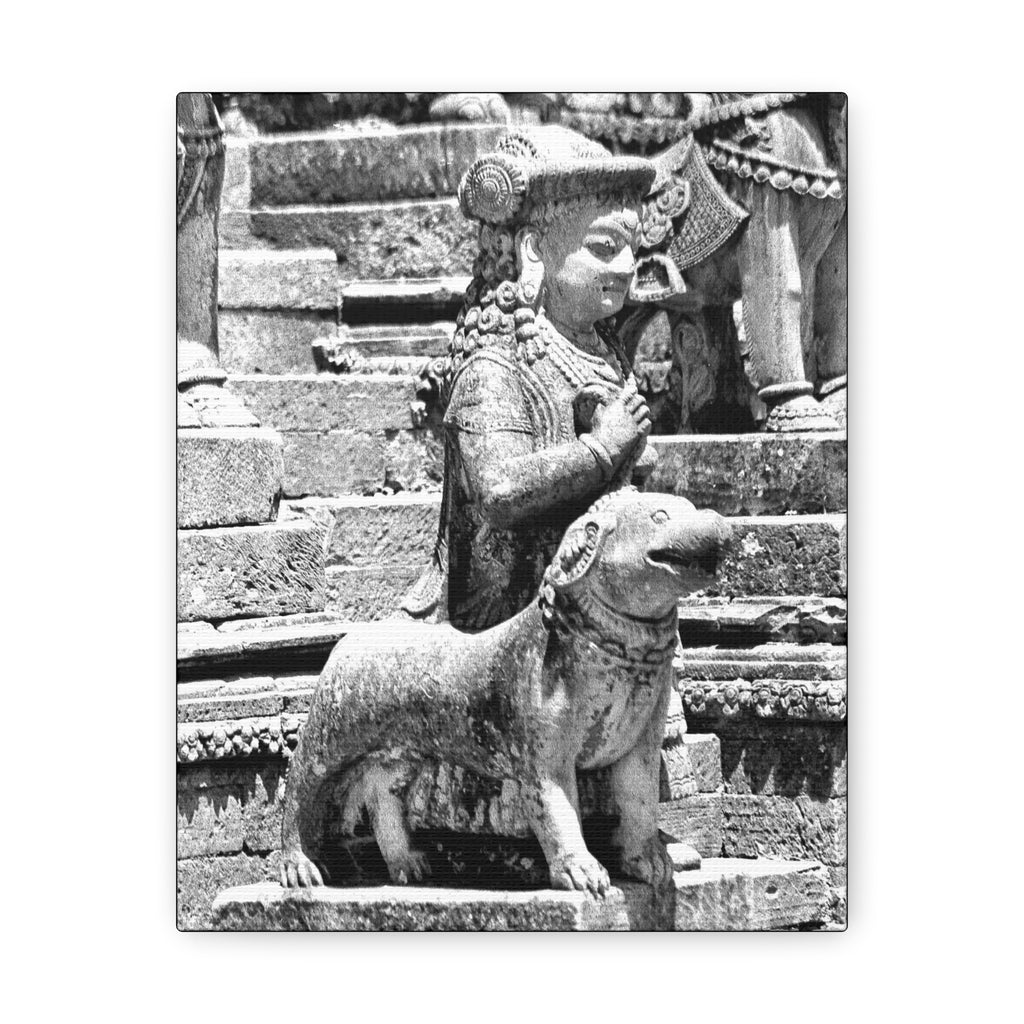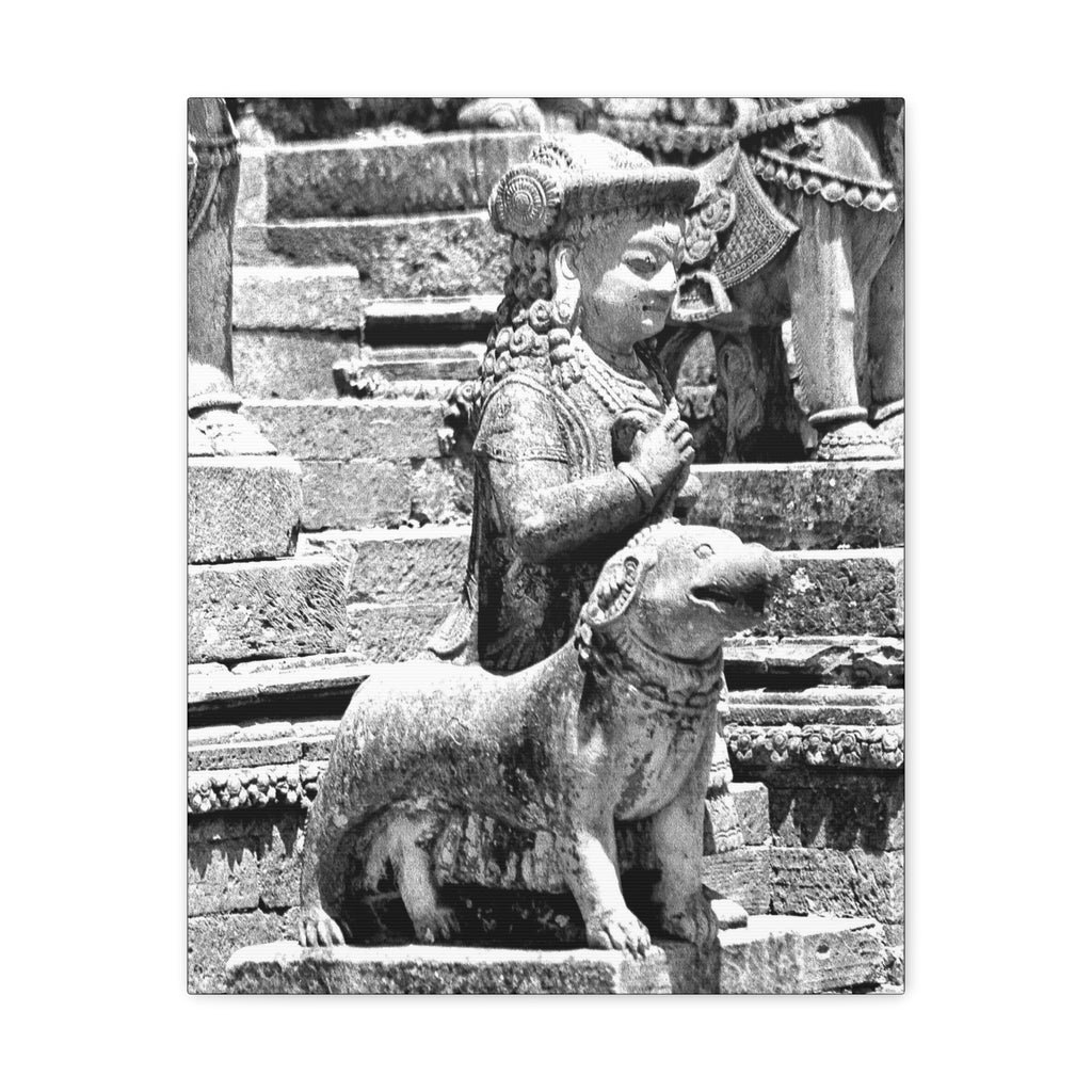 34 - Royal Court Ambassador Stone Statue - Patan Nepal, Durbar Square - Canvas Print
