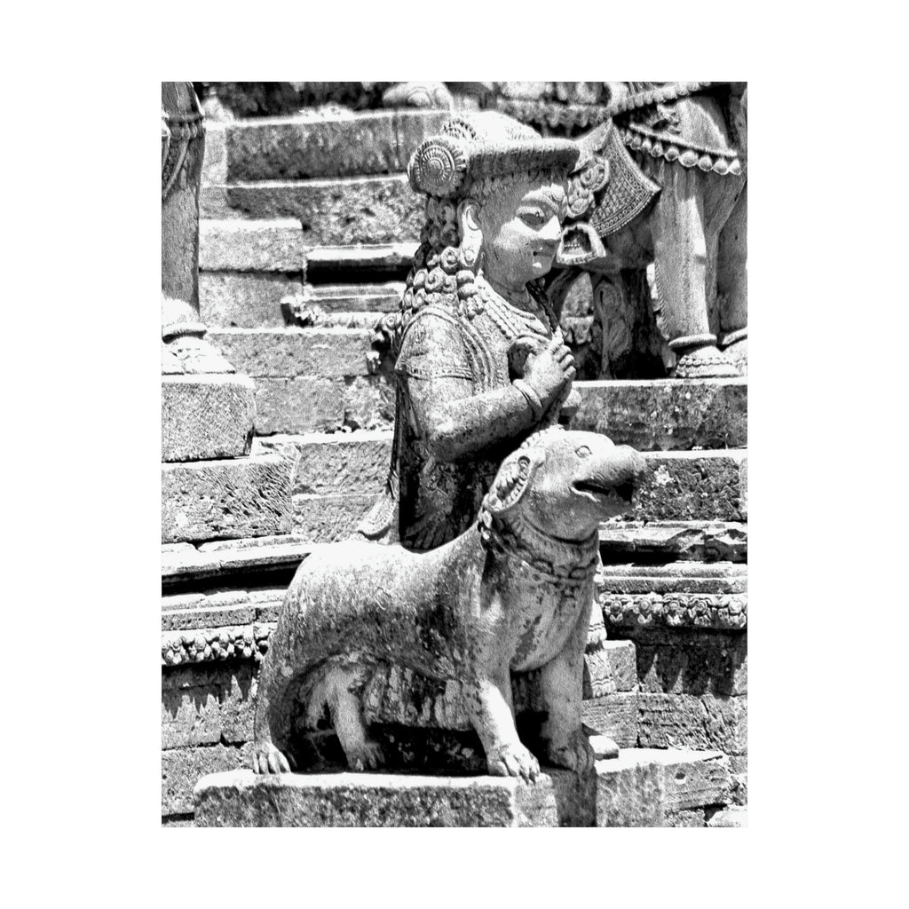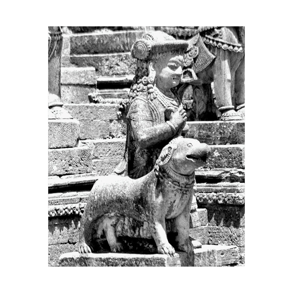 Known as the Royal Court Ambassador, this little stone statue sits on the palace steps of Patan, Nepal's Durbar Square.