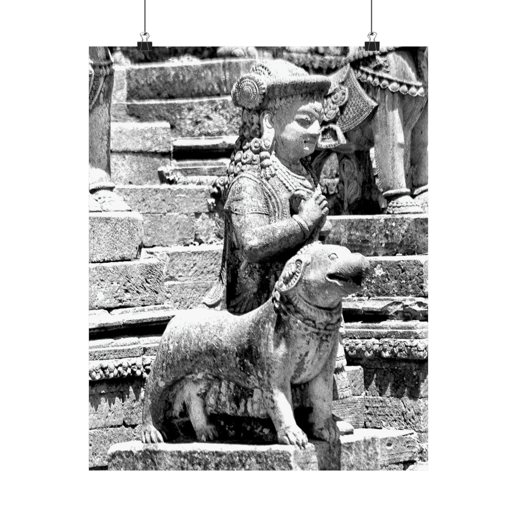 34 - Royal Court Ambassador Stone Statue - Patan Nepal, Durbar Square - Premium Poster Print