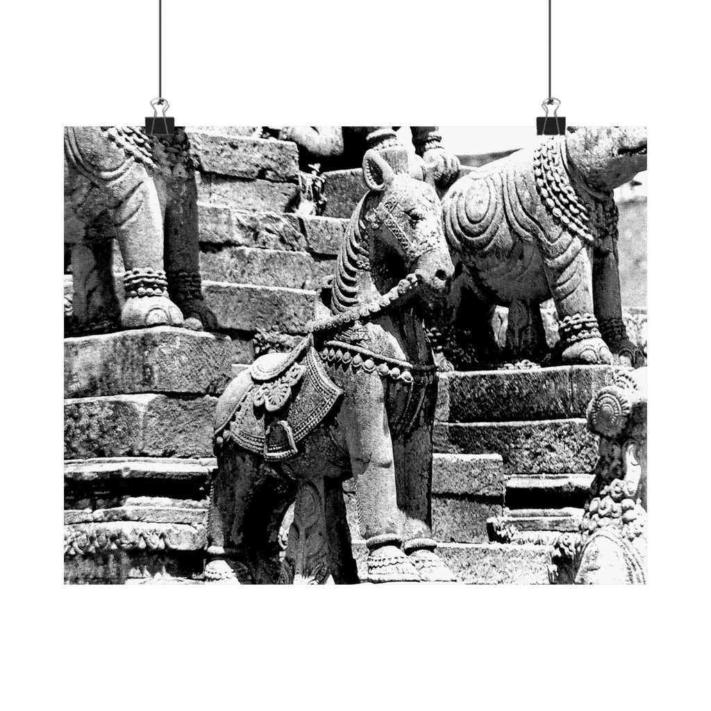 35 - Stone Horse At Royal Palace - Patan Nepal, Durbar Square - Premium Poster Print