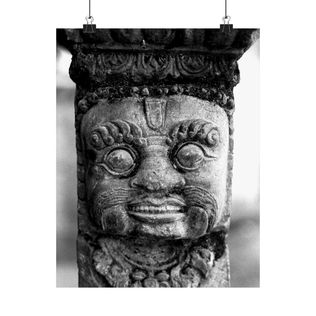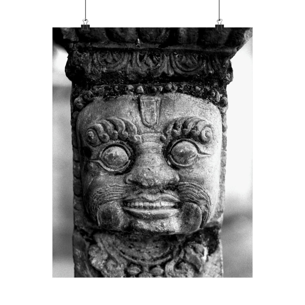 40 - Stone Carving Of Face Detail - Patan Nepal, Durbar Square - Premium Poster Print