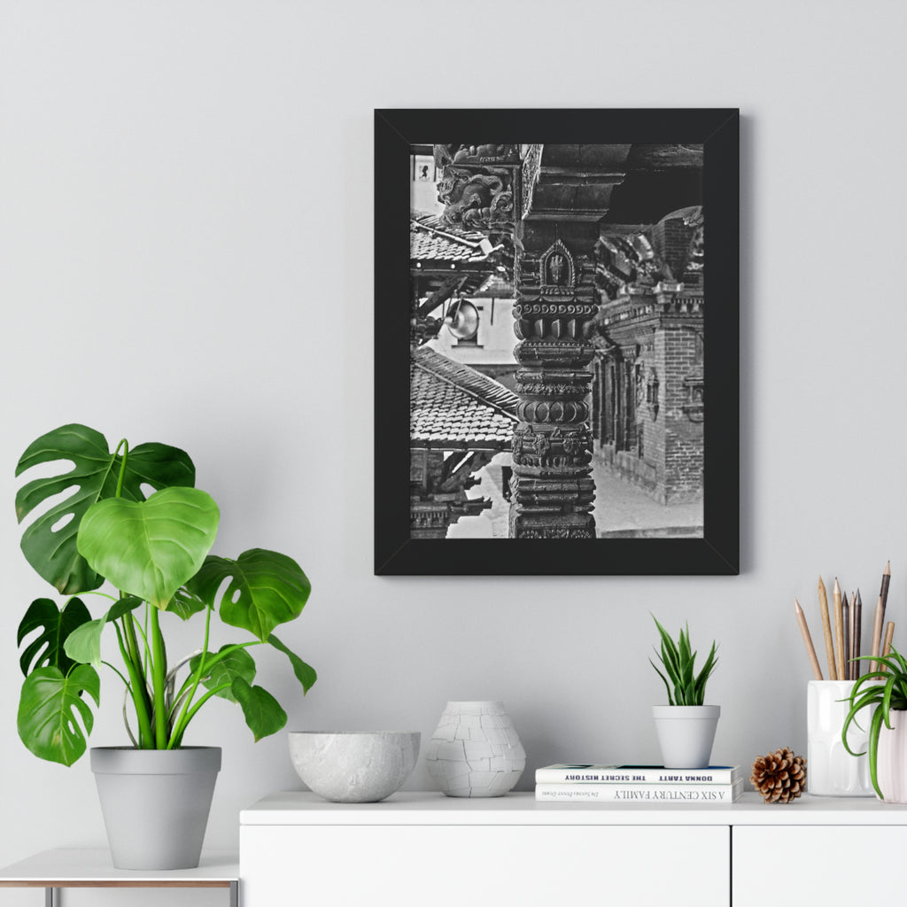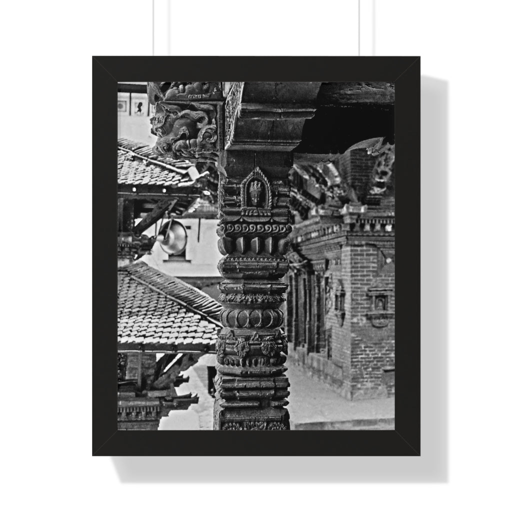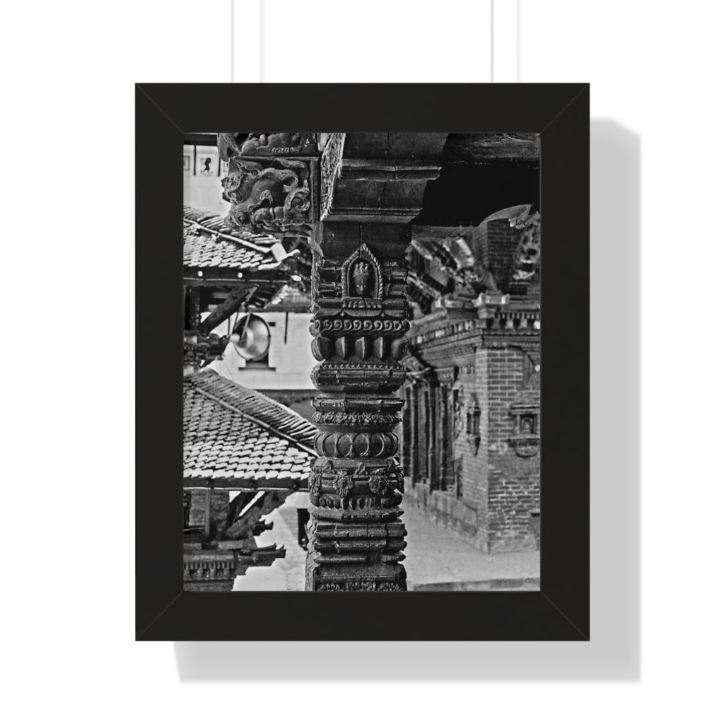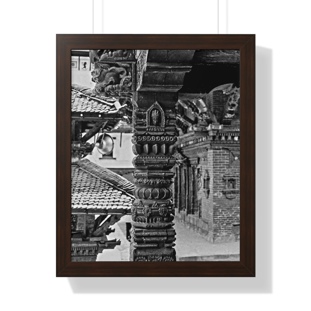 43 - Single Stone Column Carving - Patan Nepal, Durbar Square - Framed Photo Print