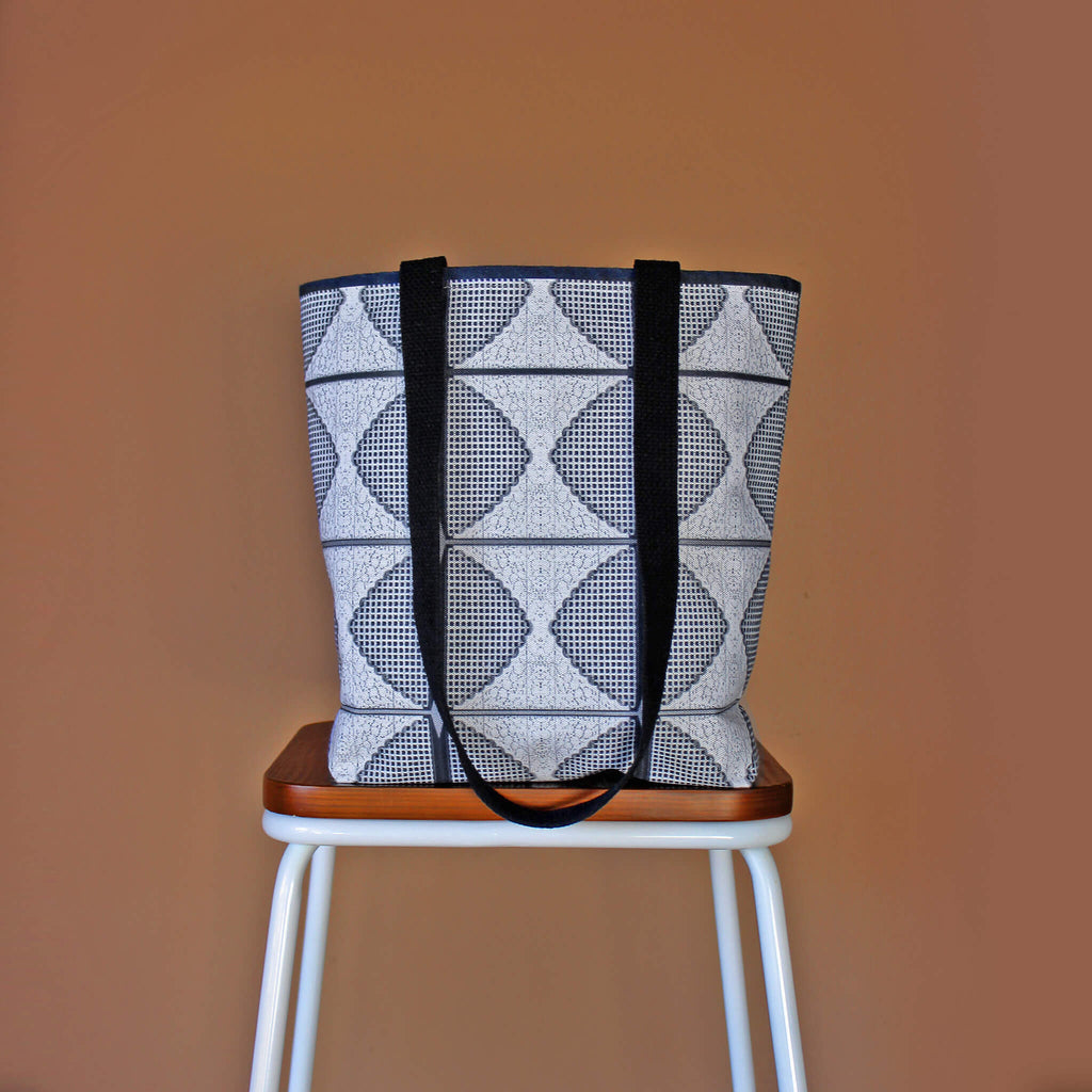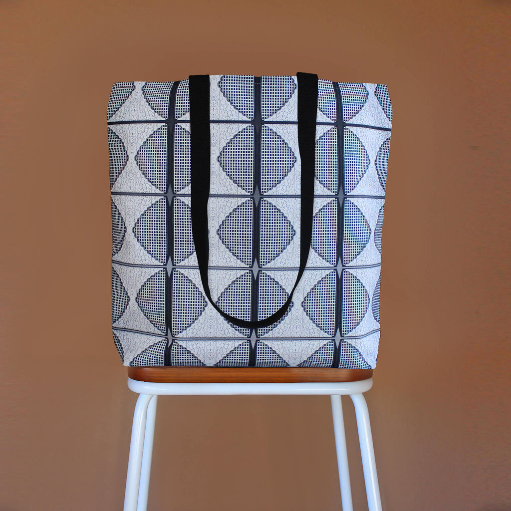 The Grate-ness Grid Tote bag is a mesmerizing maze of meditative visuals.